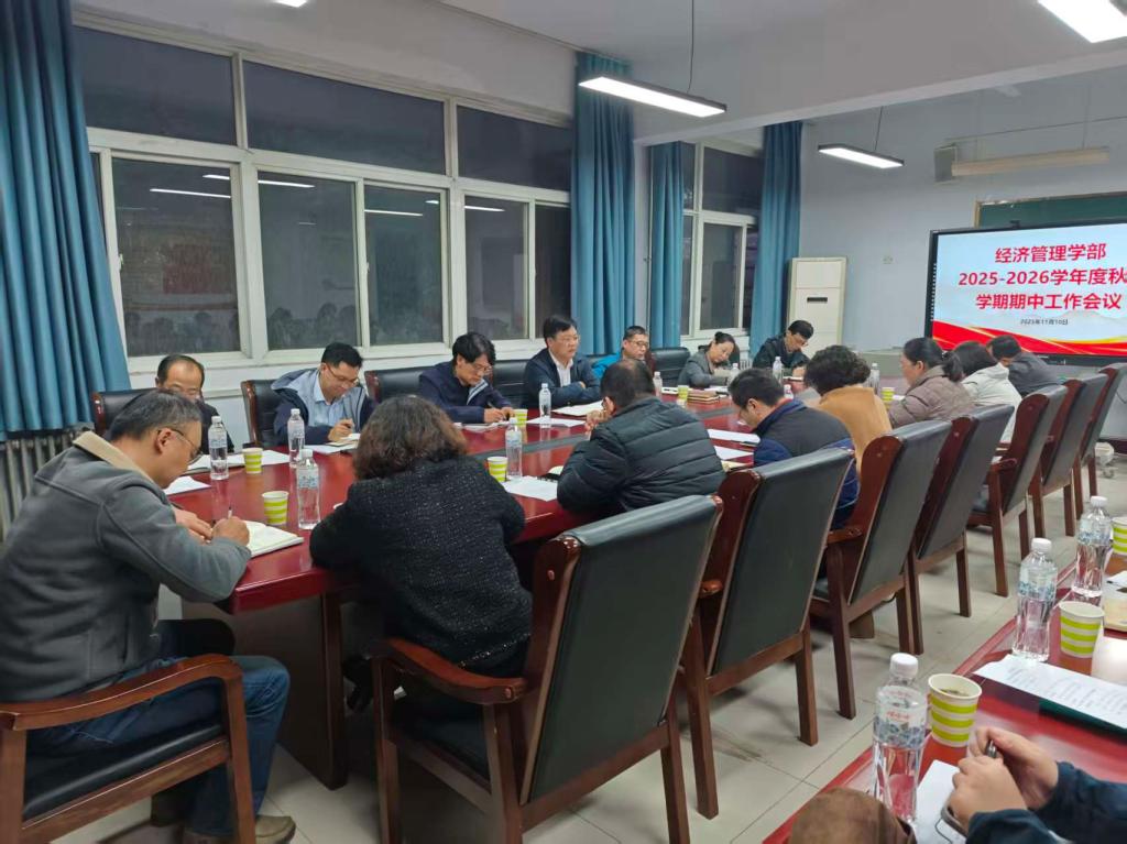 11月10日下午,新乡学院经济管理学部在管理学院会议室召开2025年秋季学期期中工作推进会暨党风廉政谈话基层支部建设工作会。副校长、经济管理学部主任杨钧出席会议,经济学院、管理学院、商学院领导班子及科级干部参会,共同梳理学期进展,部署下一阶段重点工作。