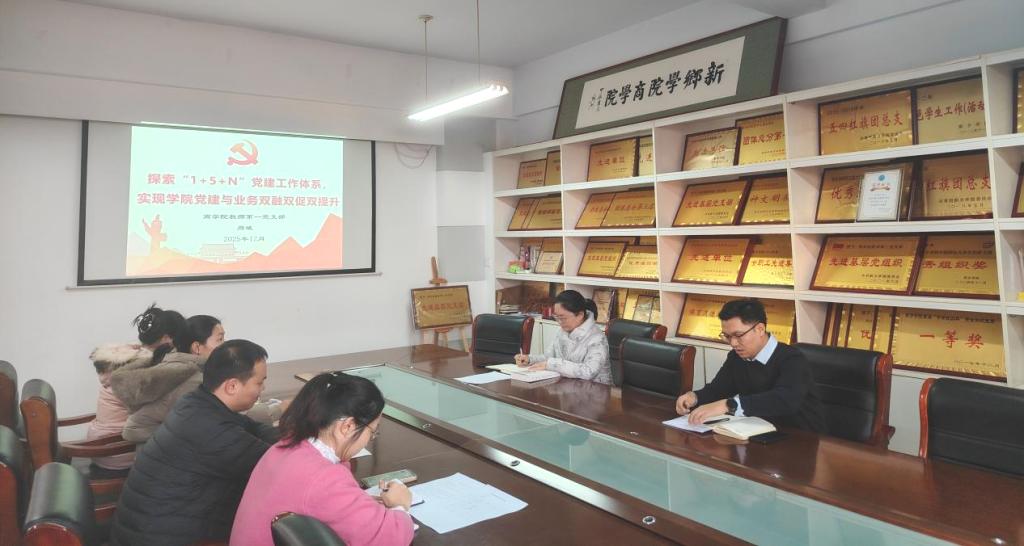 为深入学习贯彻习近平总书记关于“围绕中心抓党建,抓好党建促业务”的重要指示精神,落细落实学院“五说”系列活动部署,12月5日下午,商学院在A03-504会议室开展”五说”之“支部书记说党建”系列活动。商学院教师第一党支部书记周斌以《探索“1+5+N”党建工作体系,实现学院党建与业务双融双促双提升》为题作专题报告。商学院教师党支部、学生党支部书记参加会议。