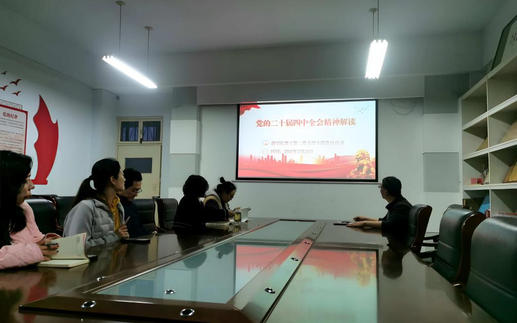 活动中,支部书记李蛟同志首先围绕党的二十届四中全会提出的重大理论观点、重大方针政策、重大工作部署进行专题领学。然后,各位党员同志先后研讨发言,进一步深化了对国家发展大局和教育事业使命担当的认识。大家一致表示,要将全会精神融入教学科研和管理服务工作中,切实推动学院各项事业高质量发展。
