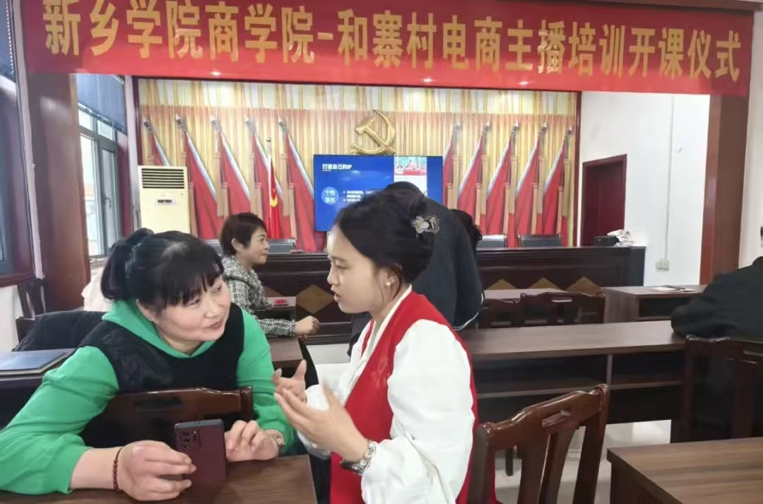 4月3日,商学院教师团队带领电子商务专业的8名在校大学生来到封丘县鲁岗镇和寨村,为当地村民开展了一期“干货满满”的直播电商培训。