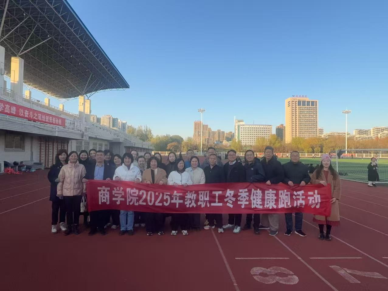 为丰富教职工课余生活,倡导健康生活理念,营造积极向上的校园氛围,11月18日下午,商学院分工会以“蓄势美好,健康暖冬”为主题的健康跑活动在学校西操场顺利开展,全体教职工踊跃参与,用活力与热情驱散冬日寒意。