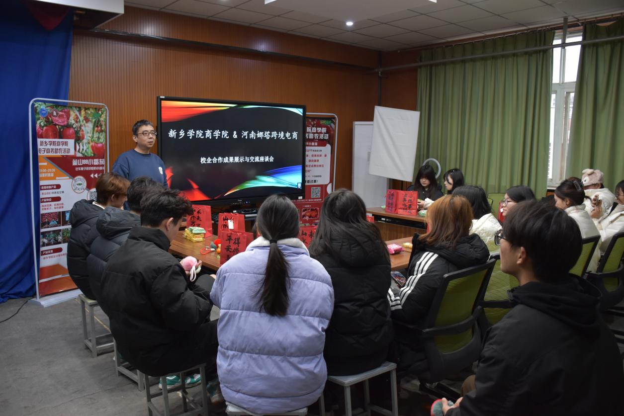 12月31日下午,商学院组织开展校企合作项目成果展示与交流活动,持续推进校企协同育人、深化产教融合。商学院院长周斌、副院长李蛟,河南娜塔跨境电商有限公司的企业导师,以及电子商务教研室师生代表共同参加活动。座谈会围绕双方校企合作项目阶段性成果展开,通过成果展示与交流,充分肯定校企双方在实践活动中的积极参与和投入成效。