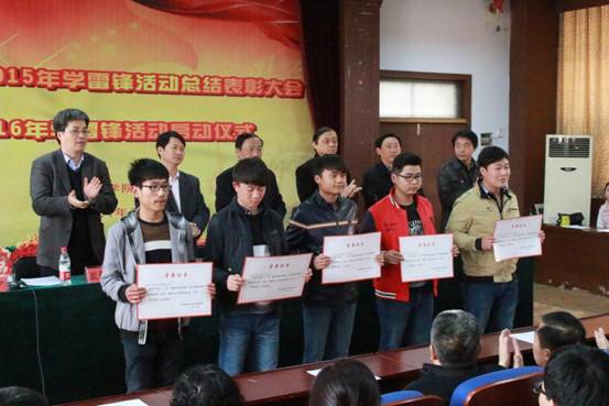 副校长刘翔首先宣读了《关于表彰新乡学院2015年学雷锋活动雷锋式大学生、雷锋式班级、雷锋式优秀青年服务队的决定》,商学院余京刚、冯利朋、徐海燕同学获得“雷锋式大学生”称号,商学院青年服务队等服务队获得“雷锋式优秀青年服务队”称号。