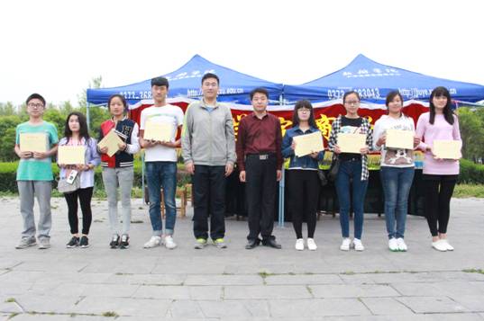 5月8日下午5点,活动结束,根据各摊位的销售额、卫生情况、捐款额等评出了名次,并举行了颁奖仪式。出席颁奖仪式的嘉宾有新乡学院团委副书记田文强老师,商学院团总支书记王鑫老师等。